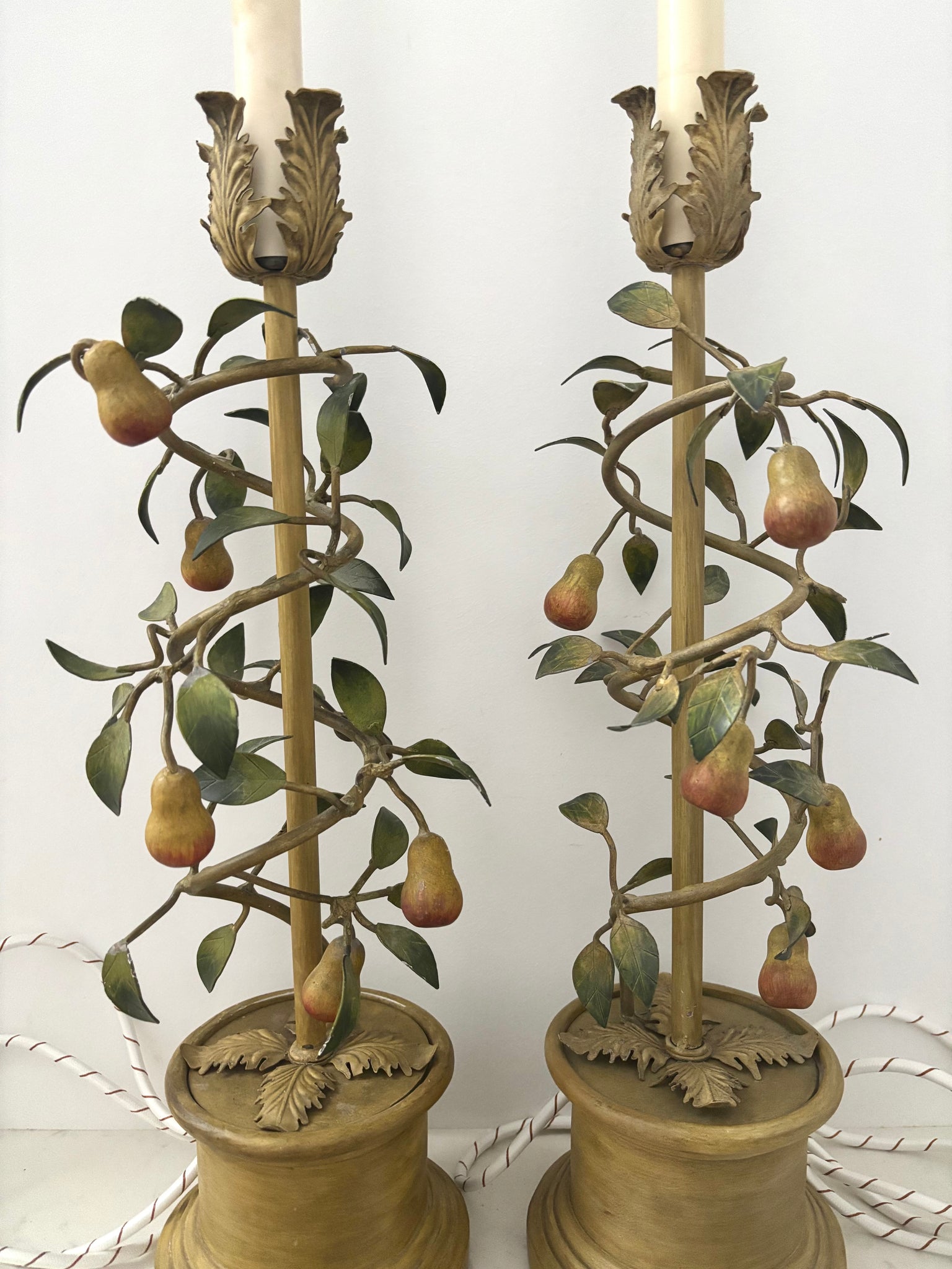 A perfect pair of beautiful tall Italian Tole Pear lamps. They are in excellent condition and measure 60cm tall with a base diameter of 13cm.